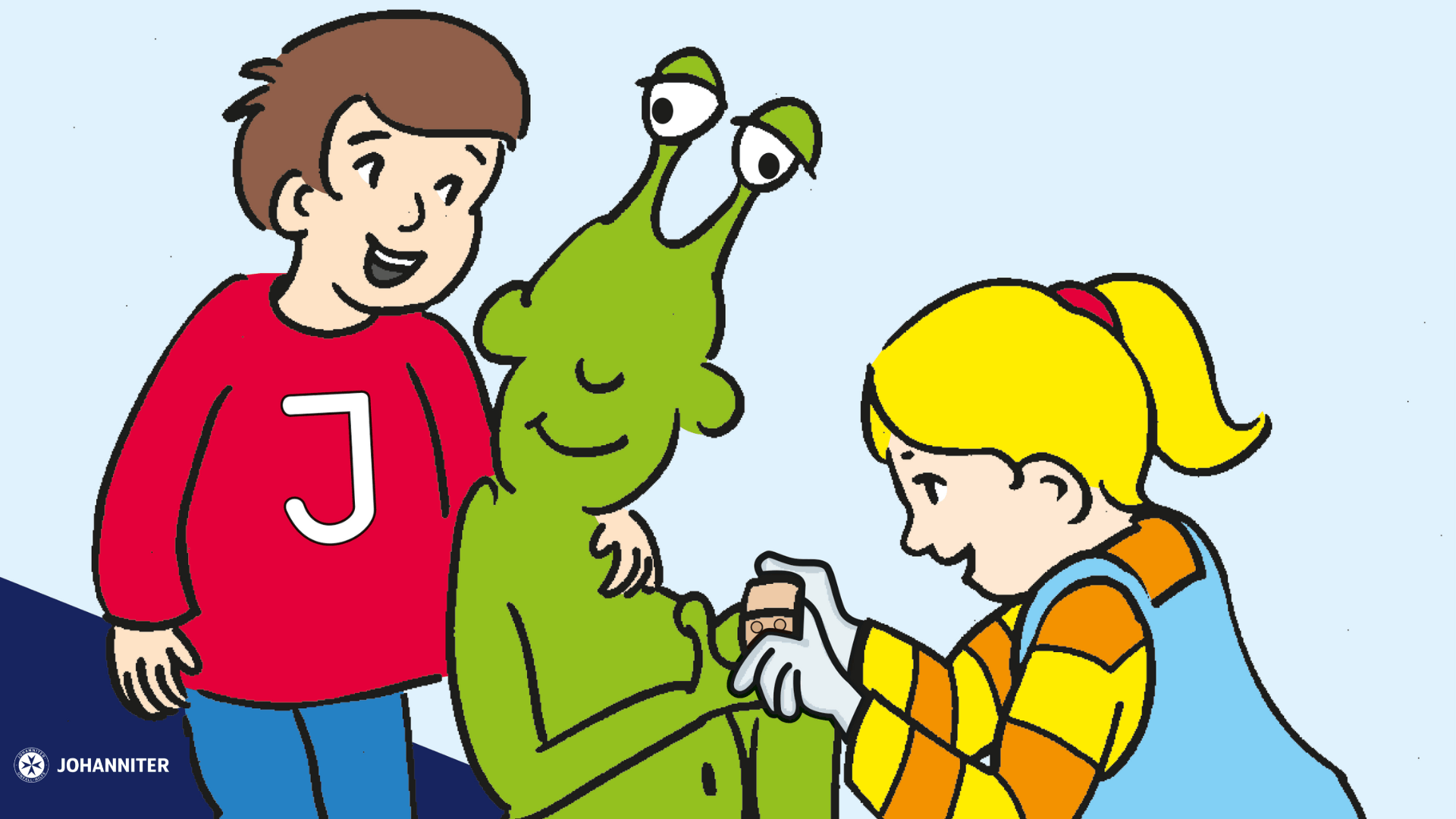 „Helfen ist stark“, heißt es bei den Johannitern, die seit Jahren erfolgreich Kindern in Kita, Kindergarten, Schule oder Jugendgruppe die Erste Hilfe vermitteln. Unterstützt werden sie dabei von den Handpuppen Jona und Joni. Um das Erlernte zu vertiefen, haben die Johanniter mit dem K&L Verlag ein leichtverständliches Mal-, Spiel und Arbeitsbuch, ein Plakat und eine App entwickelt, welche wesentliche Bestandteile eines Unterrichtspaketes für Kinder im Alter von fünf bis elf Jahren ist.